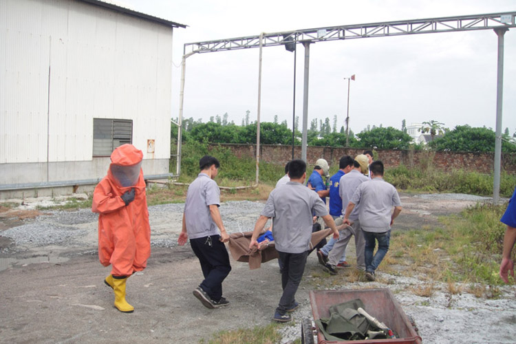 上午8:30,演練正式開始,當(dāng)值員工發(fā)現(xiàn)液氨站疑似泄漏,立即向事故現(xiàn)場主管報告有關(guān)事項,現(xiàn)場主管用對講機(jī)向現(xiàn)場總指揮與總指揮匯報了有關(guān)事件,並由現(xiàn)場總指揮建議總指揮進(jìn)入二級應(yīng)急狀態(tài)。隨即按響報警鈴聲,其他的工作人員聽到鈴聲後,馬上進(jìn)入緊急戒備狀態(tài),按照早已制定的《應(yīng)急救援預(yù)案》的相關(guān)安排,迅速組成搶險隊伍,同時拉起警戒線,通知醫(yī)療救護(hù)小組及消防隊隨時待命,使應(yīng)急救援工作迅速、高效、有序的開展,將“事故”造成的人員傷亡、財產(chǎn)損失和環(huán)境破壞降到最低限度。經(jīng)過一輪緊張而有序的搶險、救援、搶修工作,現(xiàn)場很快得到控制,演習(xí)順利完成。